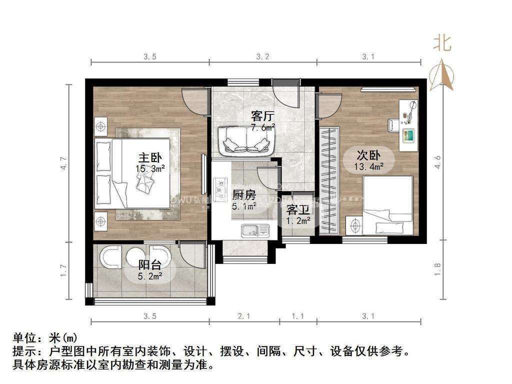 朝向南北 建筑面积60㎡