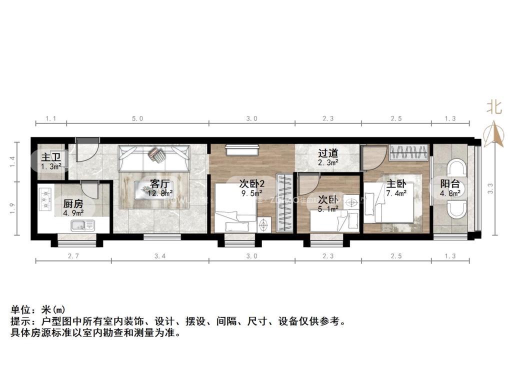 朝向南北 建筑面积55.74㎡