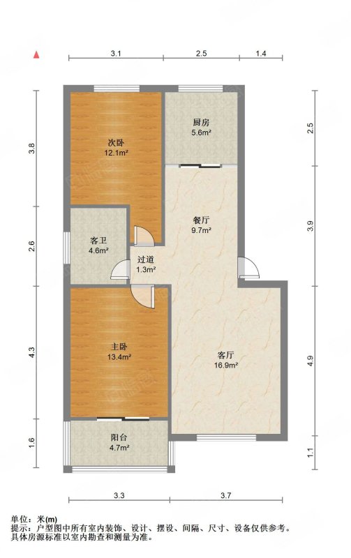 厅室2室1厅1卫1阳台