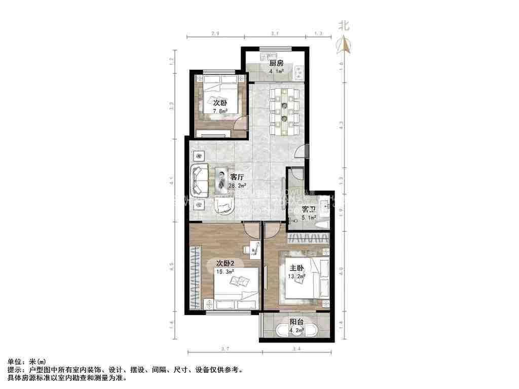 朝向南北 建筑面积99.89㎡