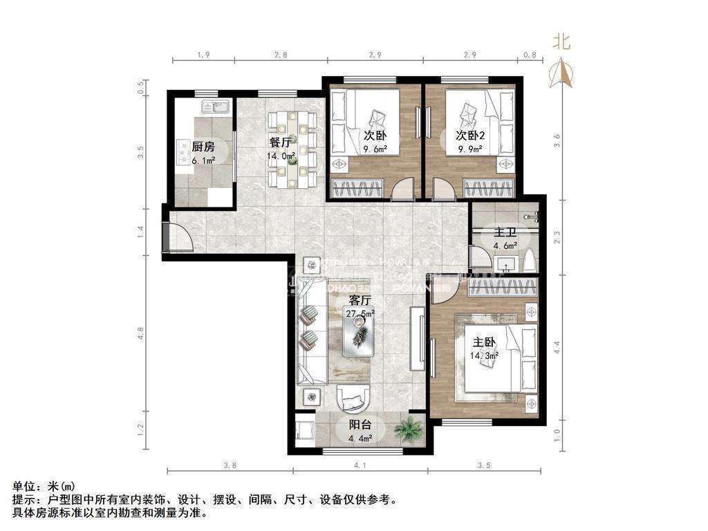 朝向南北 建筑面积127㎡