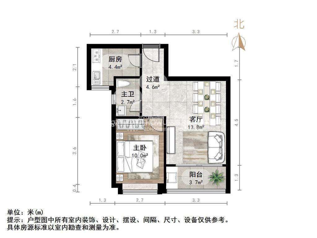 厅室1室1厅1卫1阳台