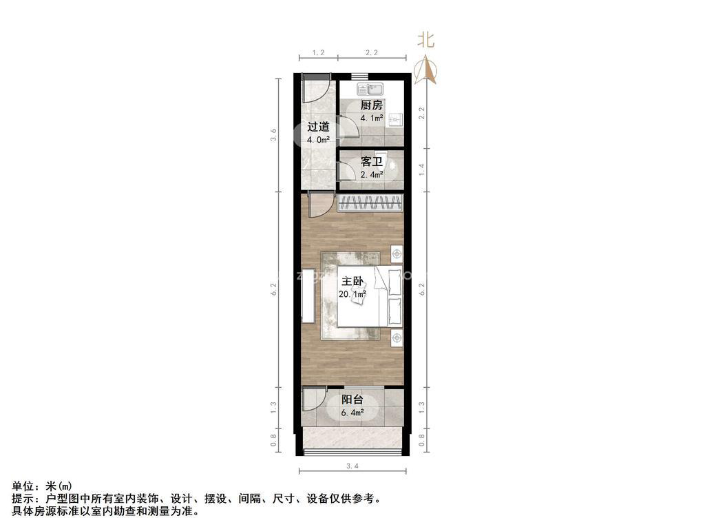 厅室1室1厅1卫1阳台