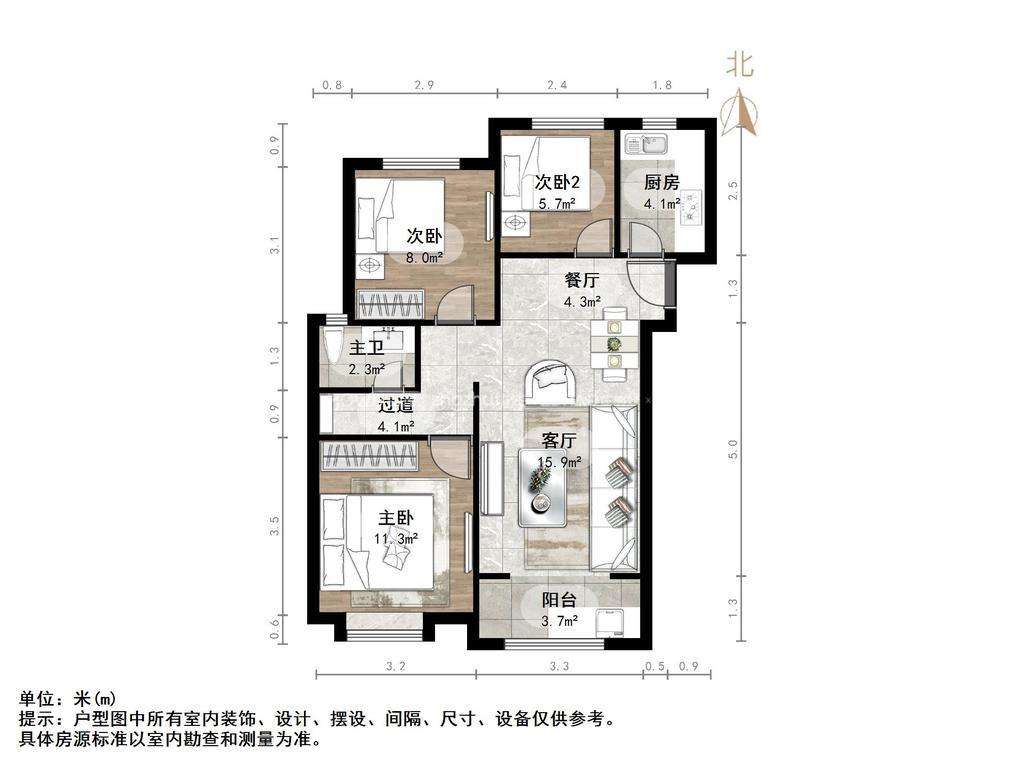 朝向南北 建筑面积96.53㎡