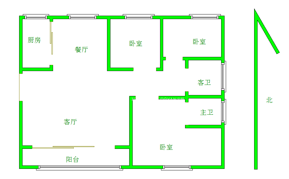 厅室3室2厅2卫1阳台
