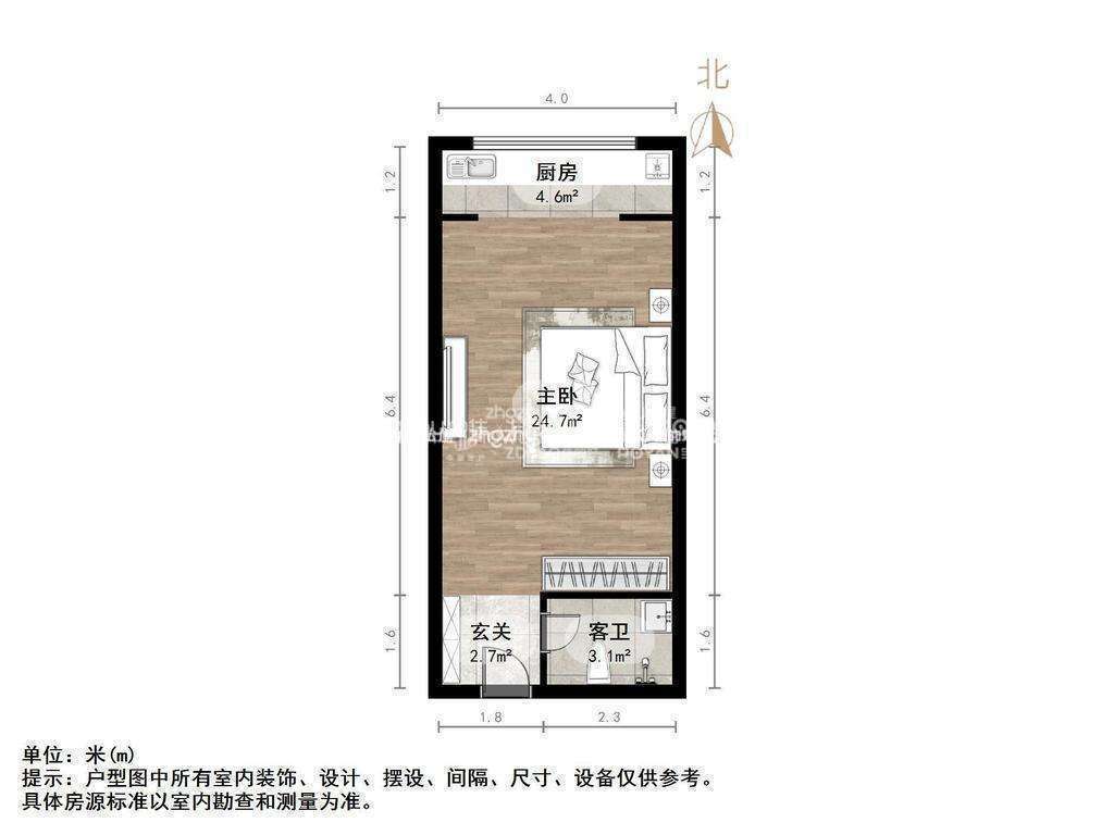 朝向北 建筑面积51㎡