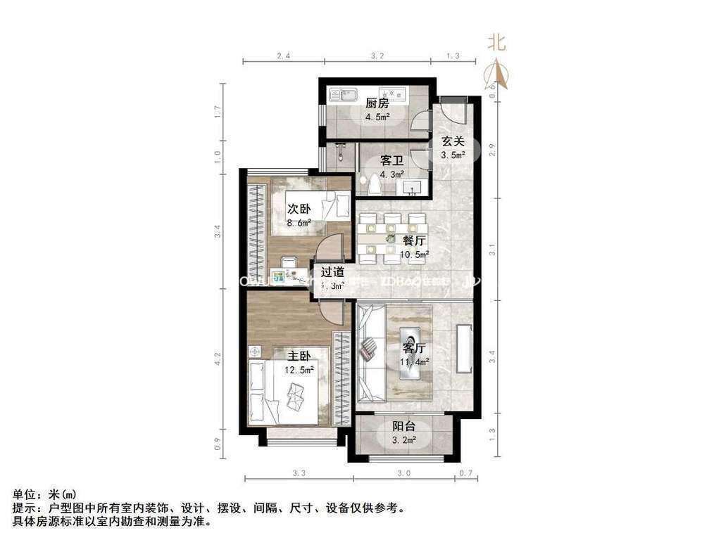 朝向南 建筑面积90㎡