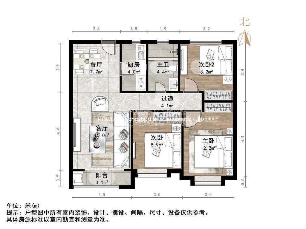 朝向南北 建筑面积107.98㎡