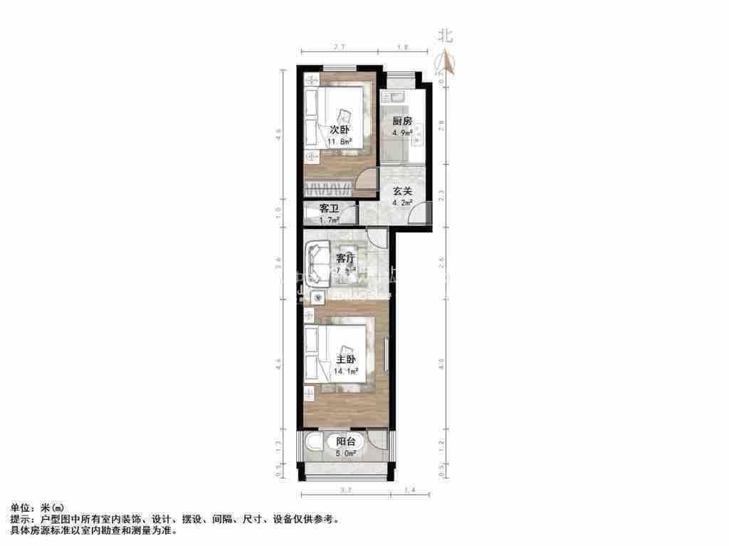 朝向南北 建筑面积61㎡