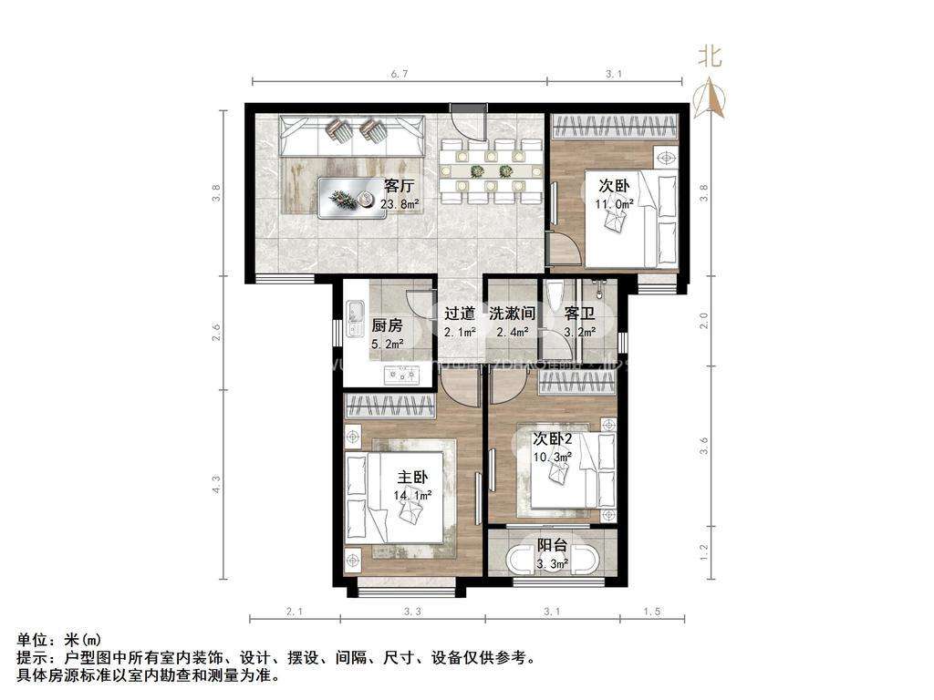 厅室3室2厅1卫1阳台