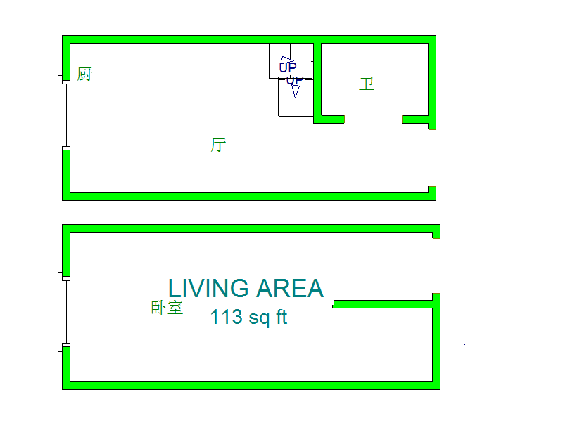 厅室1室1厅1卫1阳台