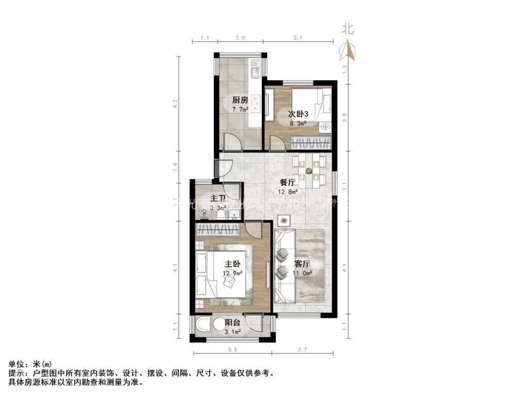 朝向南北 建筑面积77㎡