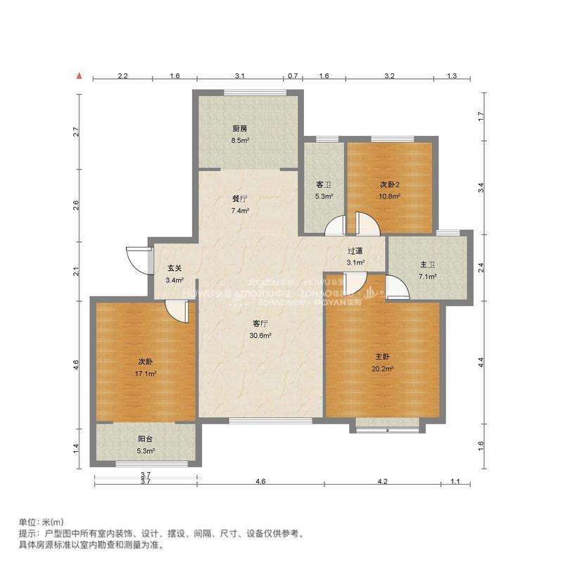 厅室3室2厅2卫1阳台