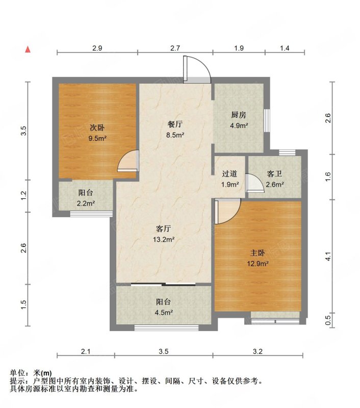 厅室2室2厅1卫2阳台