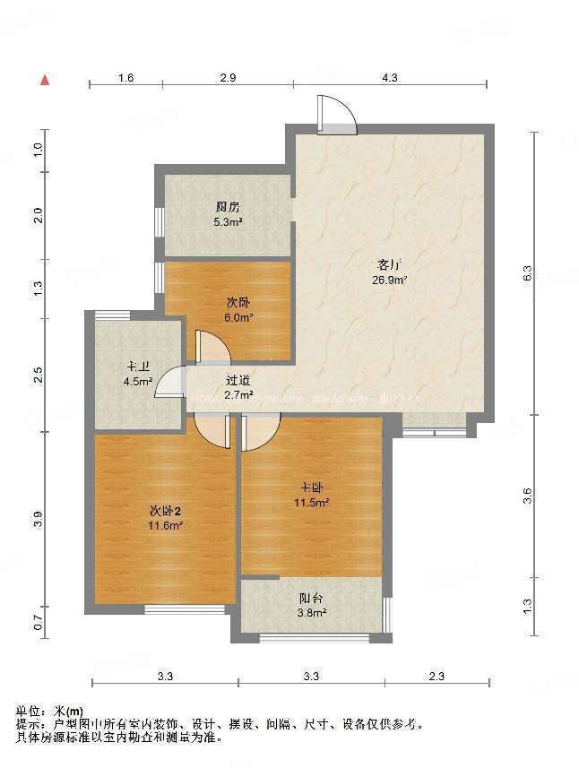 厅室3室2厅1卫1阳台