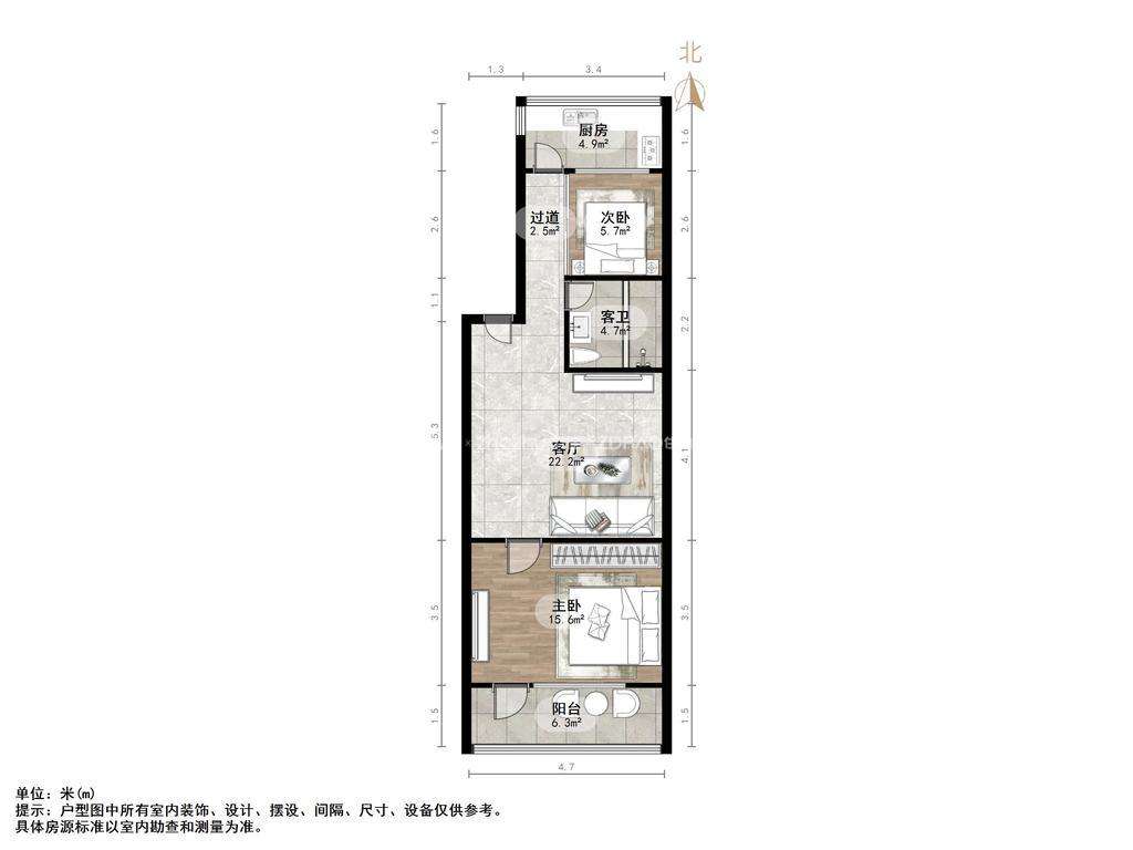 厅室2室2厅1卫2阳台
