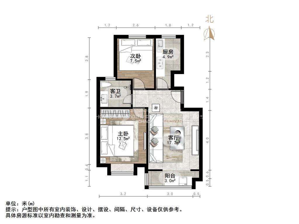 厅室2室1厅1卫1阳台