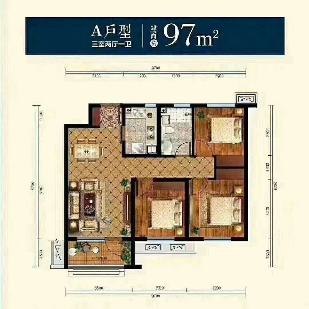 厅室3室2厅1卫1阳台