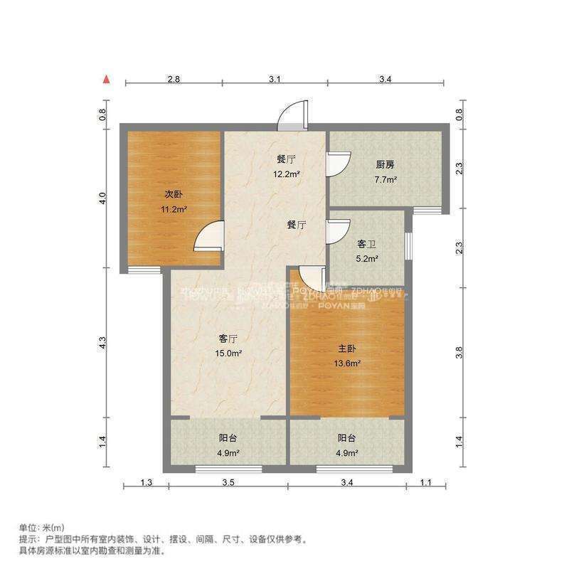 厅室2室2厅1卫1阳台