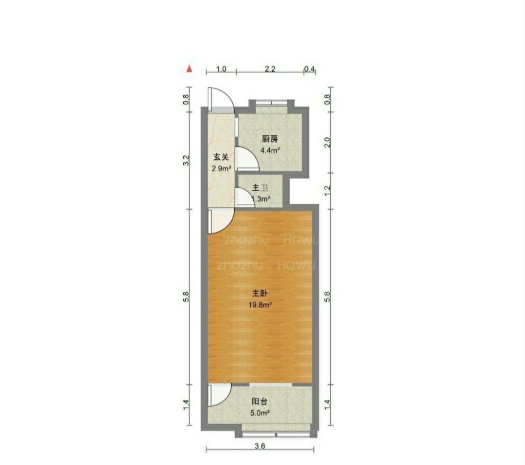 厅室1室1厅1卫1阳台