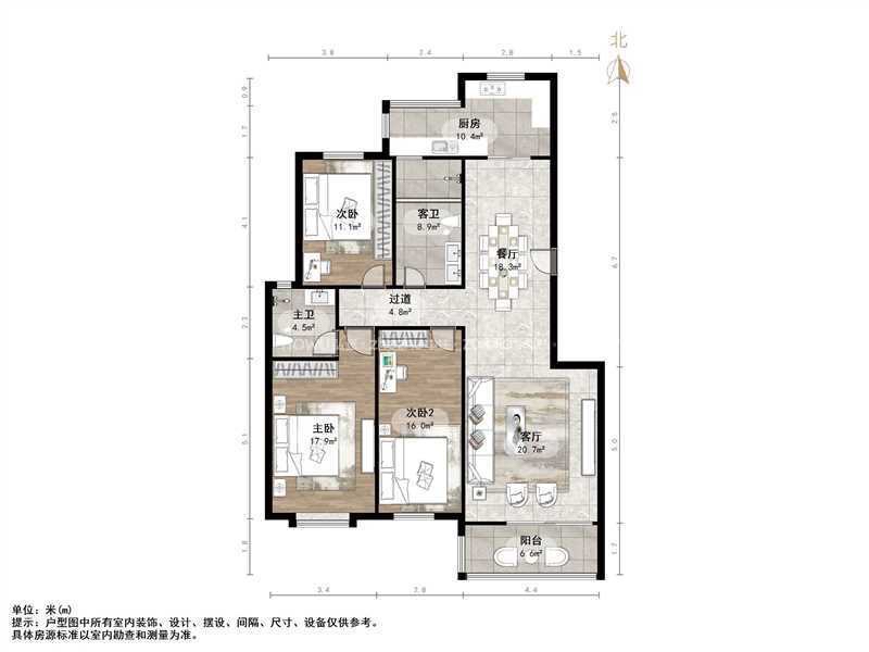 厅室3室2厅1卫0阳台