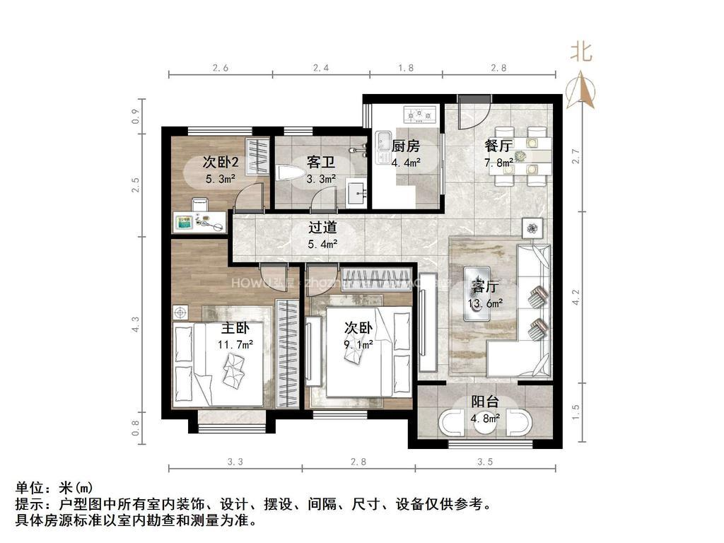 朝向南北 建筑面积94.5㎡