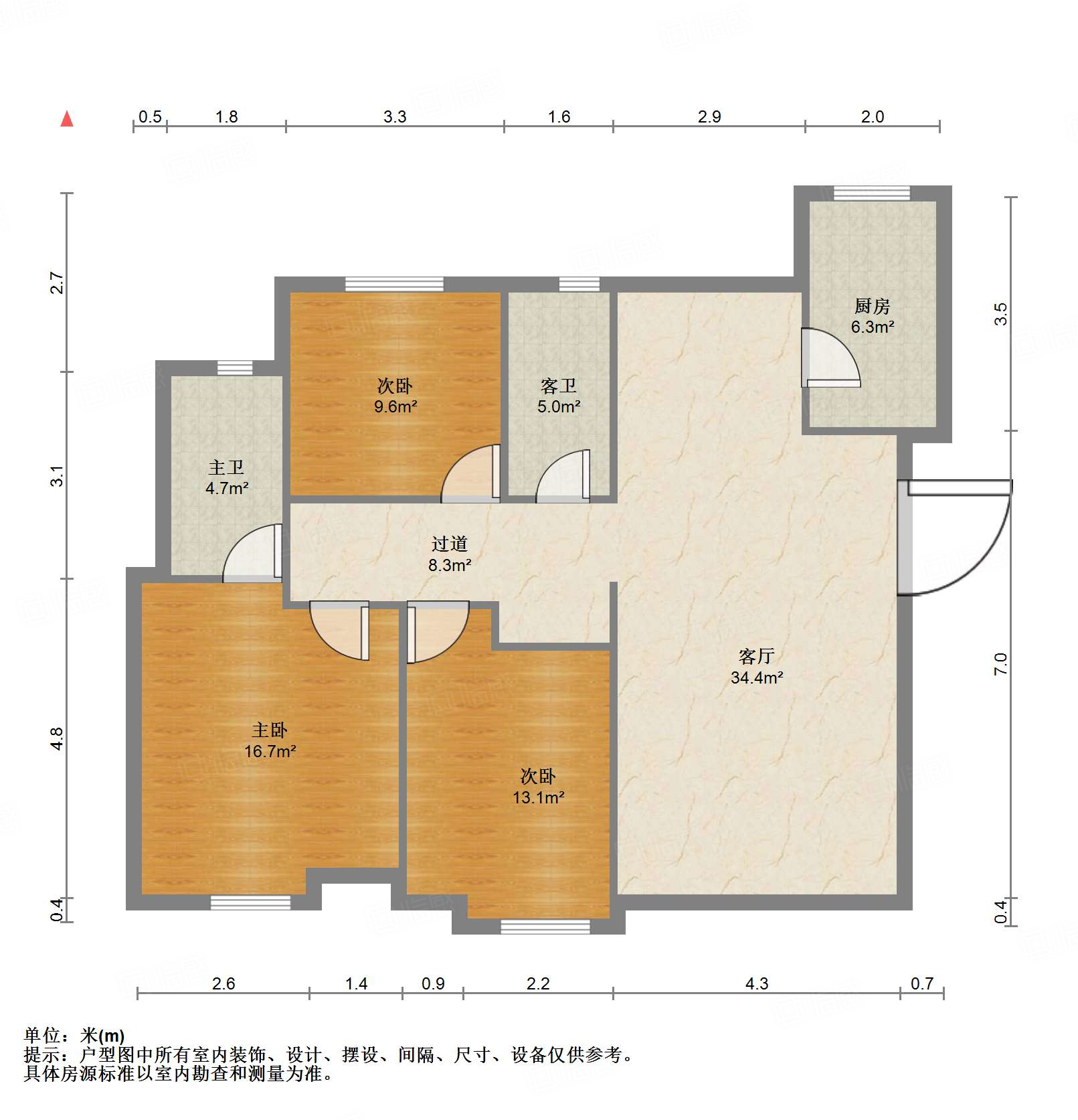 厅室3室2厅2卫0阳台