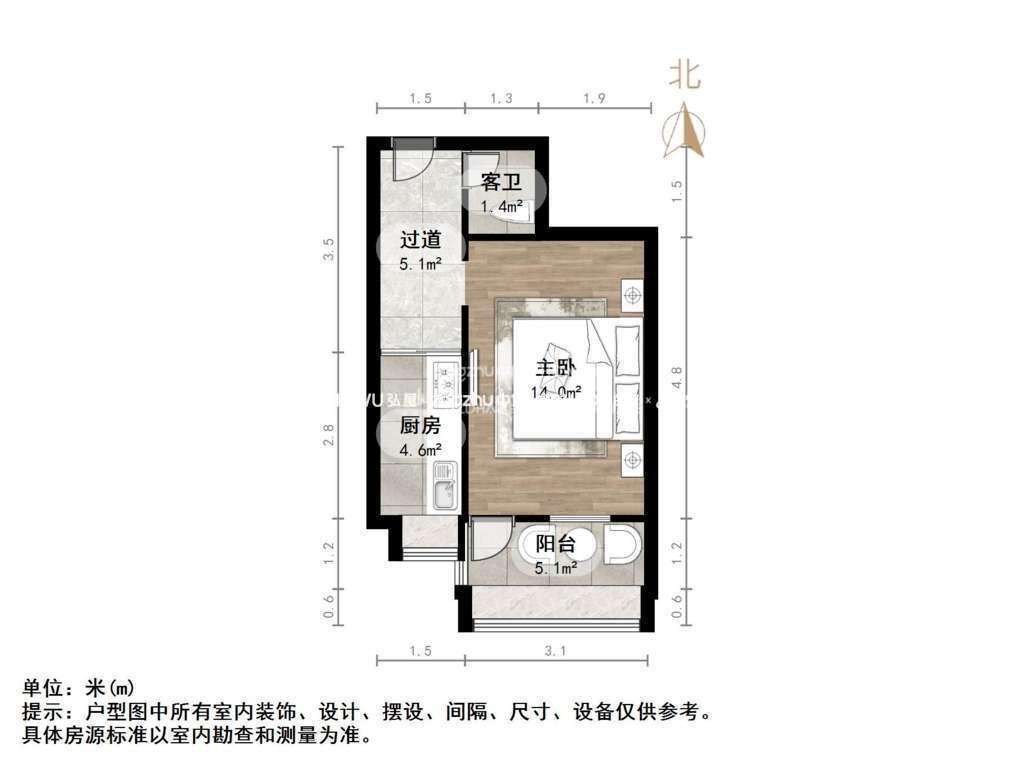 厅室1室1厅1卫1阳台