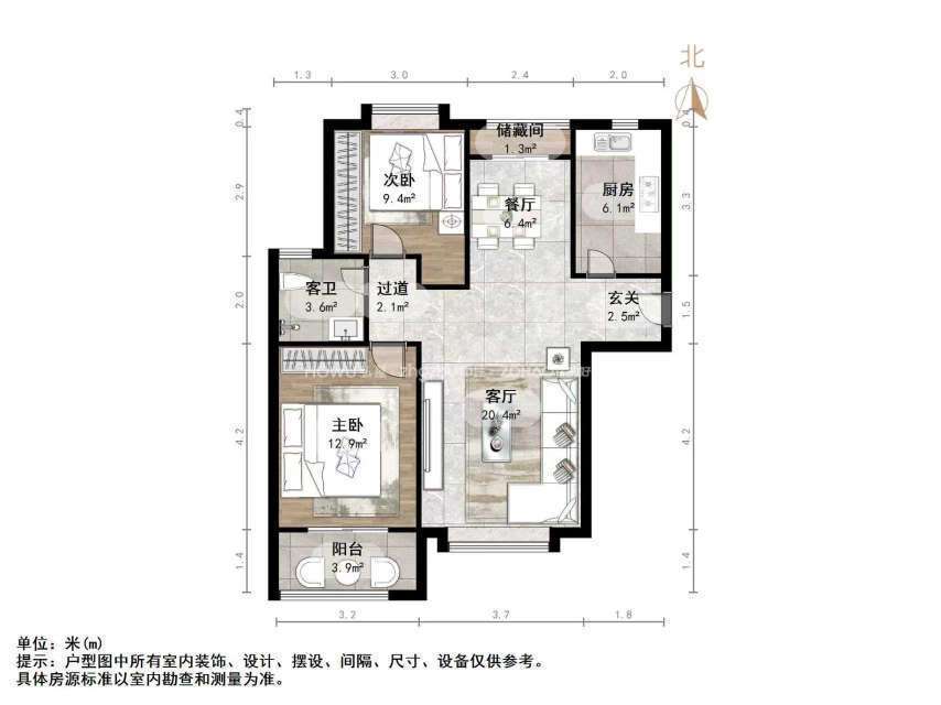 朝向南北 建筑面积90.27㎡