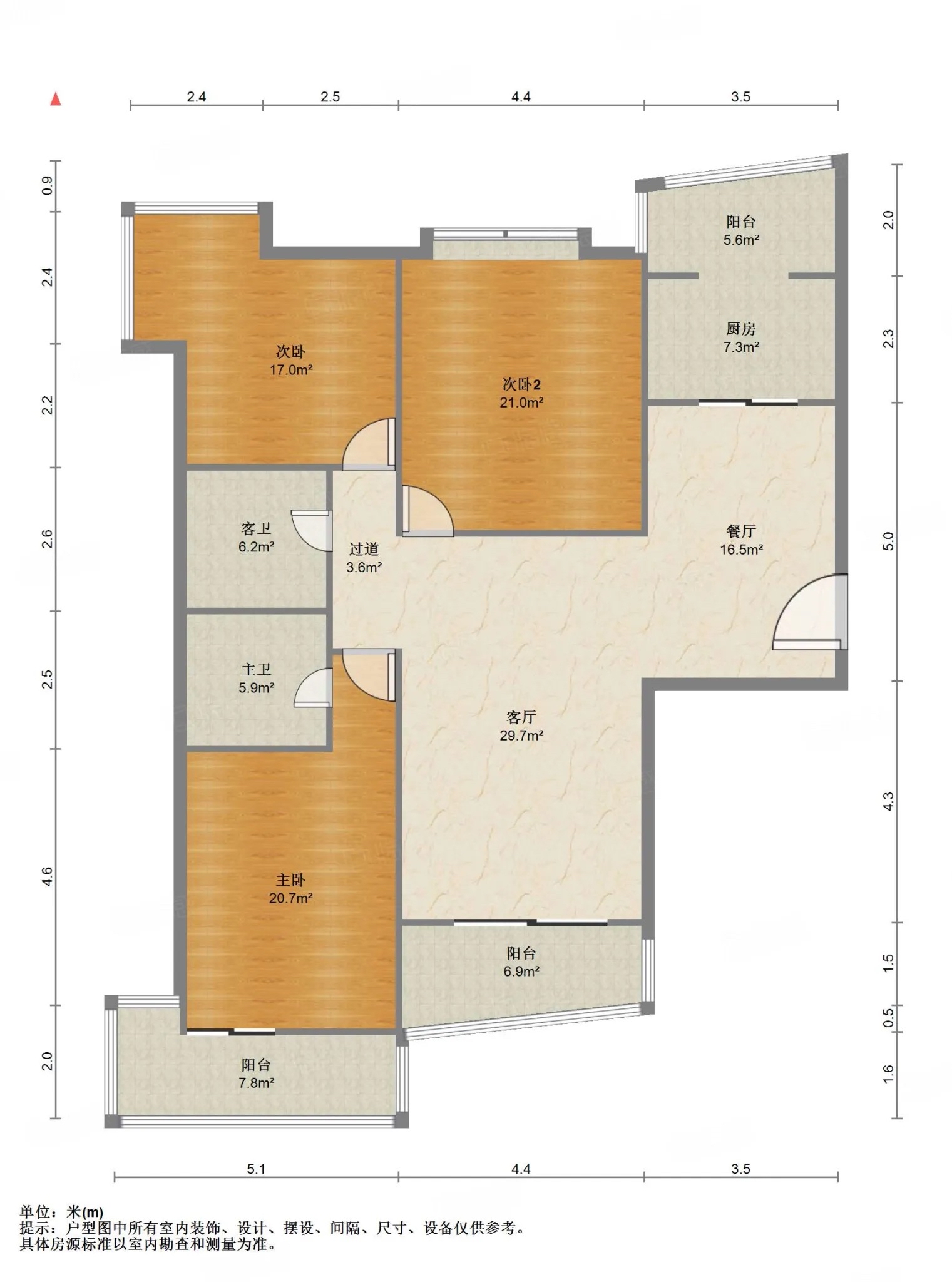 厅室3室2厅2卫1阳台