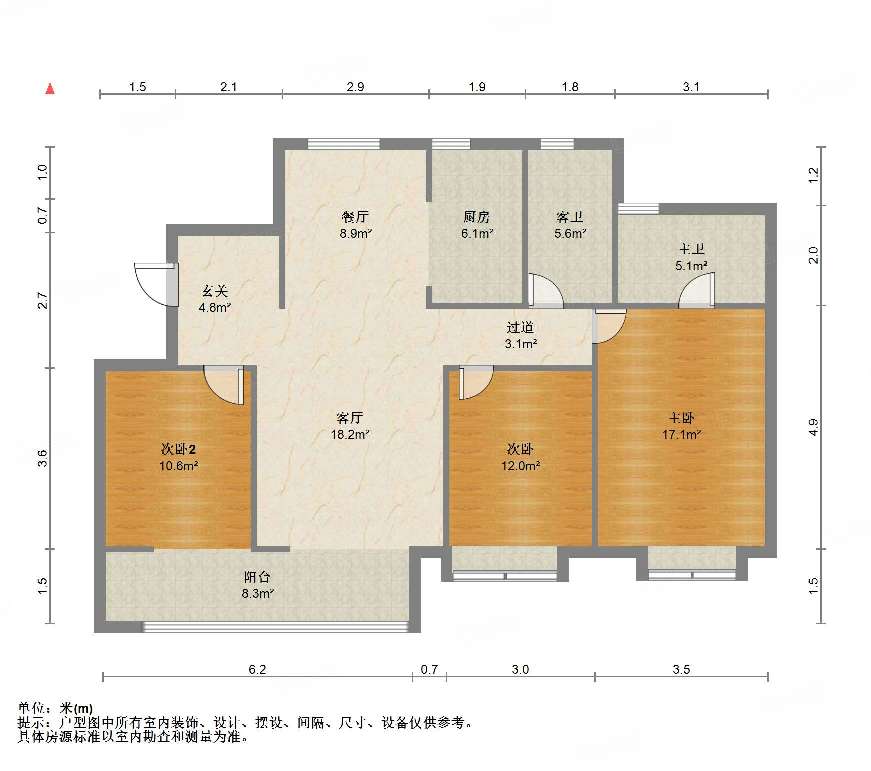 厅室3室2厅2卫1阳台