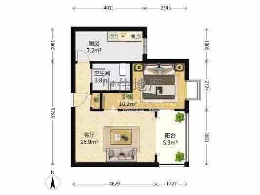 厅室2室2厅1卫1阳台