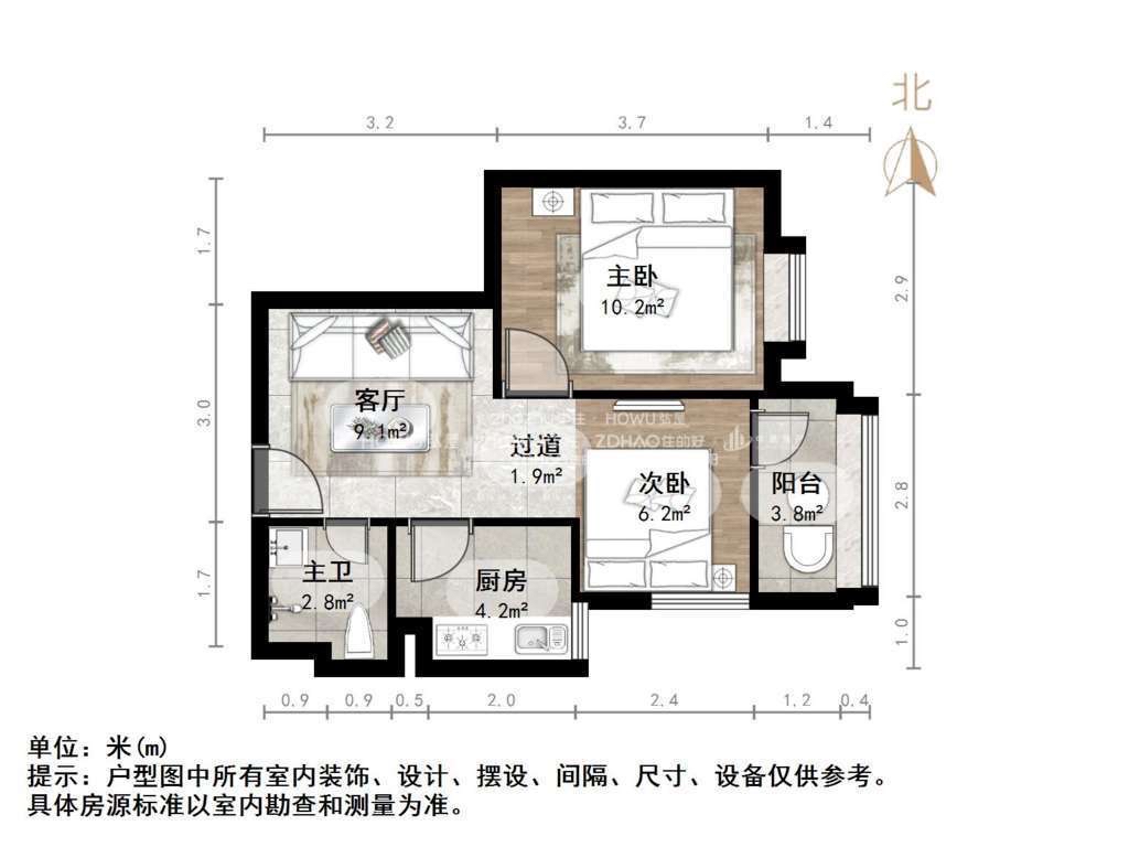 朝向南北 建筑面积65㎡