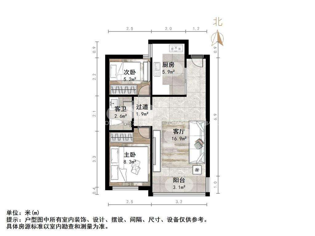 朝向南北 建筑面积70.4㎡