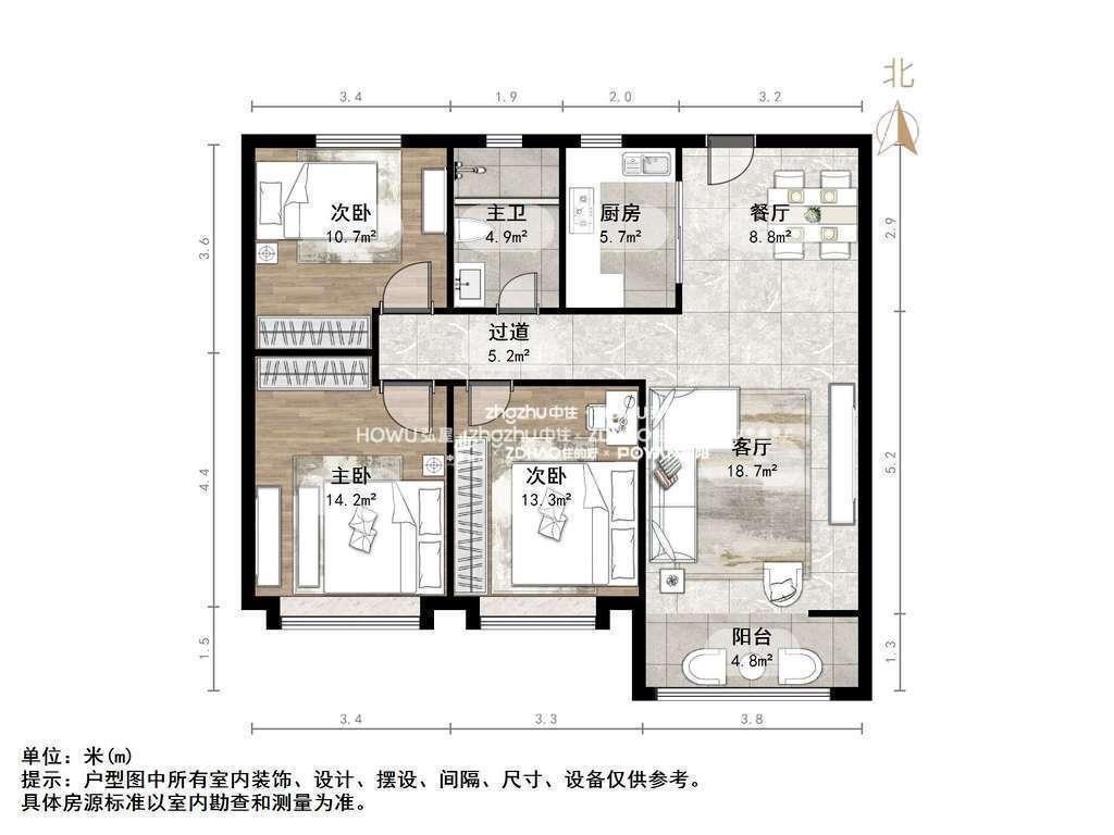 厅室3室2厅1卫1阳台