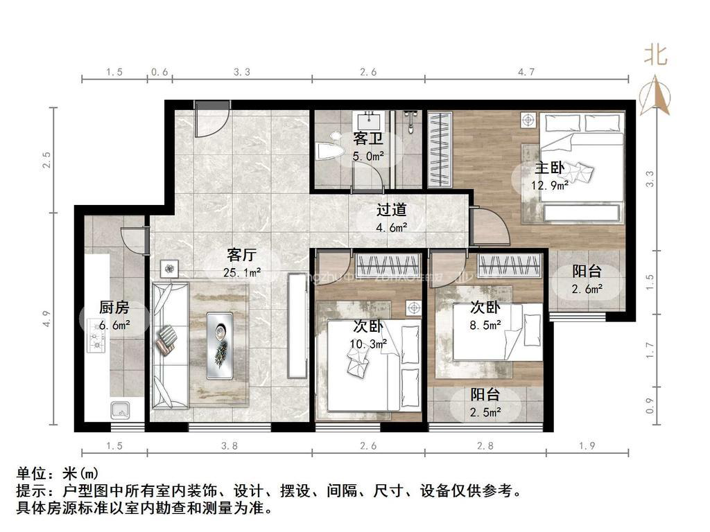 厅室3室2厅1卫0阳台