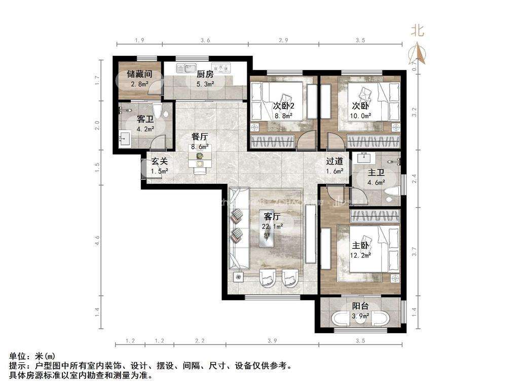 朝向南北 建筑面积120.49㎡
