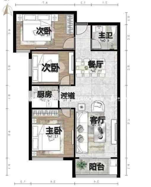 厅室3室2厅1卫1阳台