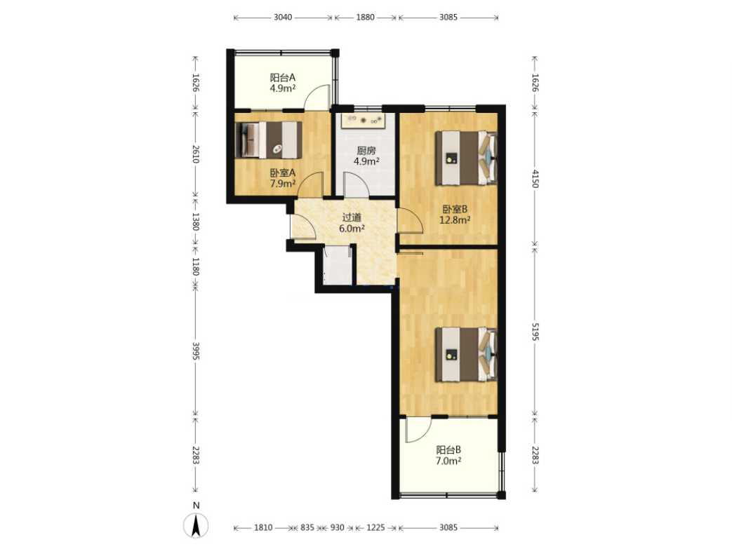 厅室3室0厅1卫1阳台