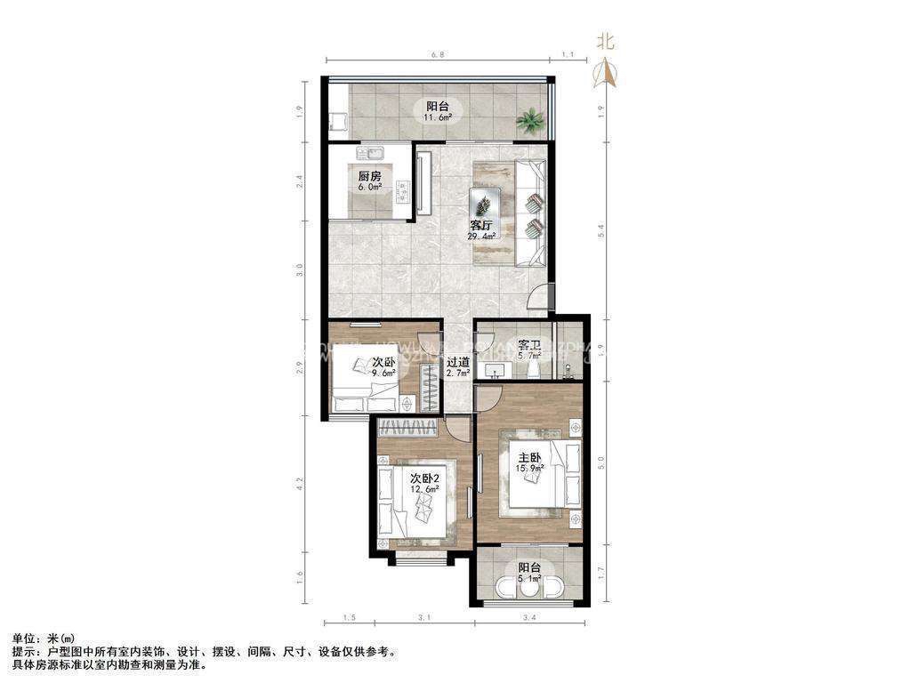 朝向南北 建筑面积115㎡