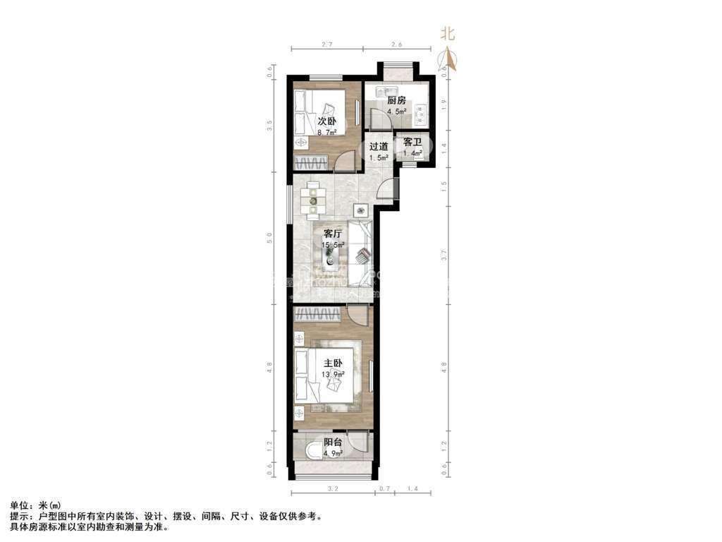 厅室2室1厅1卫1阳台