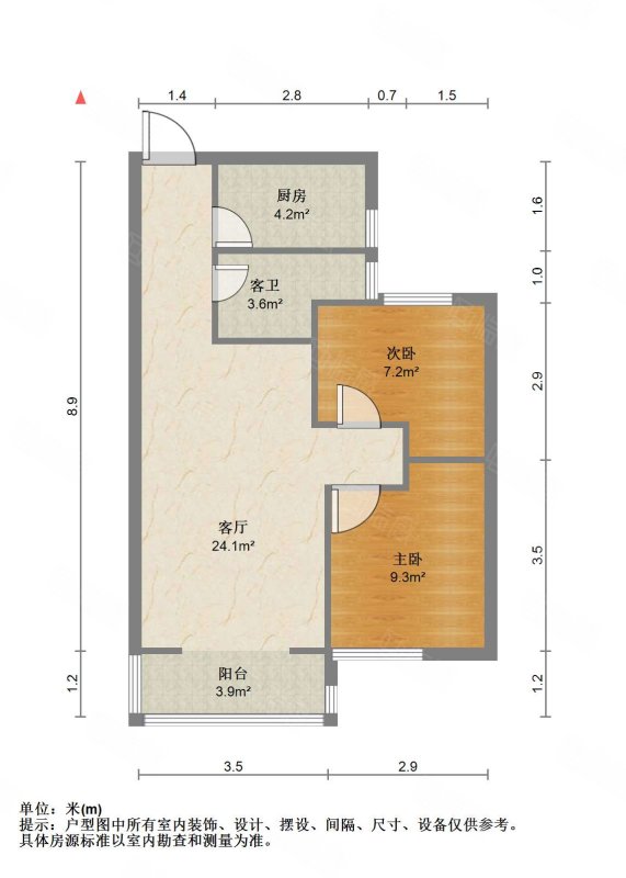 厅室2室2厅1卫1阳台