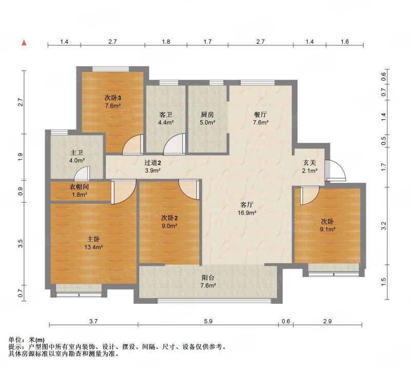 厅室4室2厅2卫1阳台