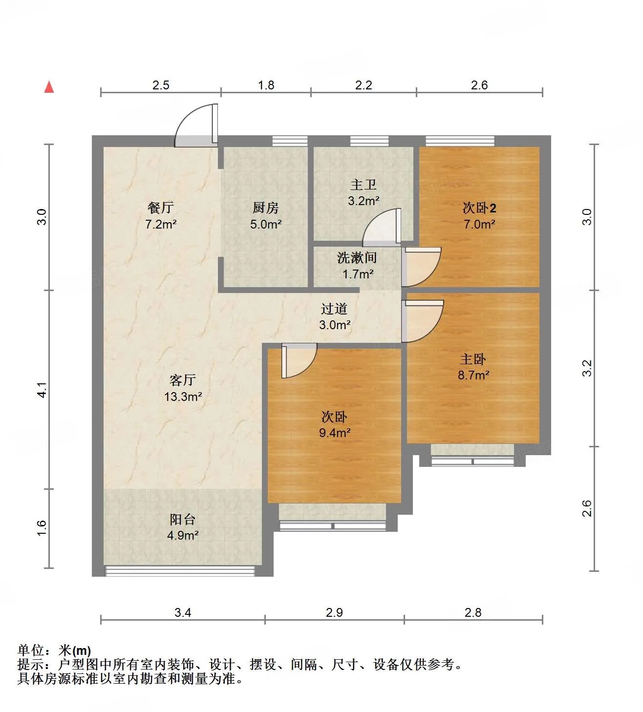 厅室3室2厅1卫1阳台