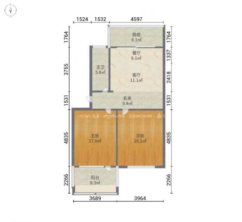 朝向南北 建筑面积85㎡