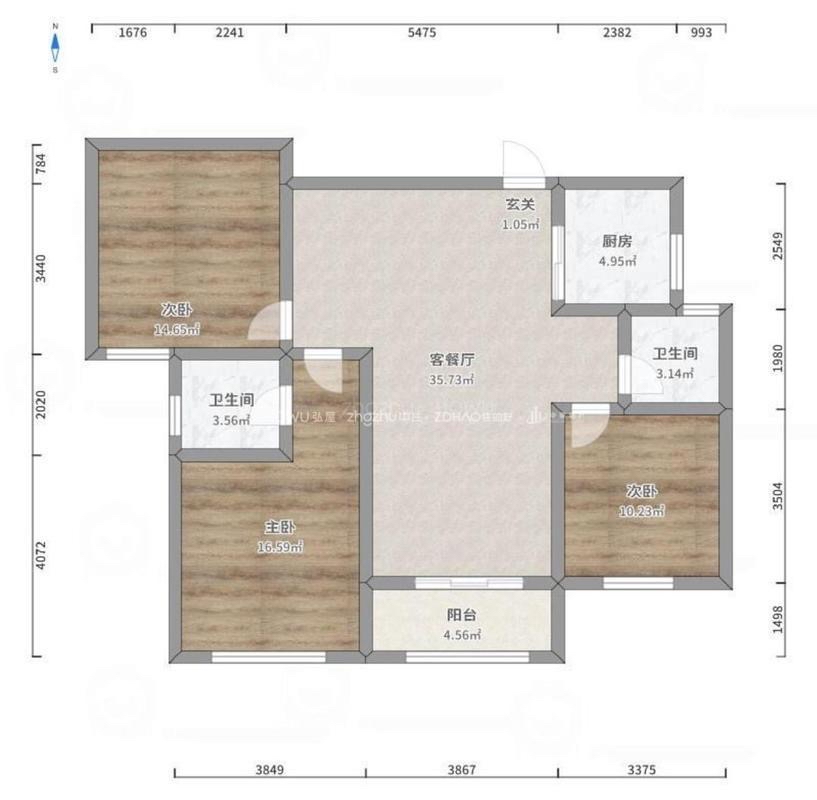 厅室3室2厅1卫1阳台