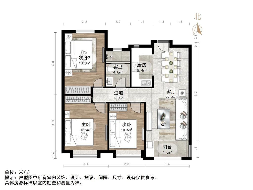 厅室3室2厅1卫1阳台