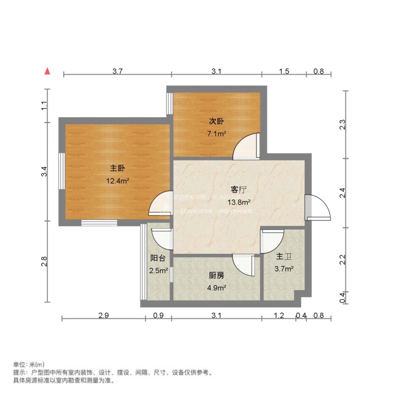 厅室2室1厅1卫1阳台