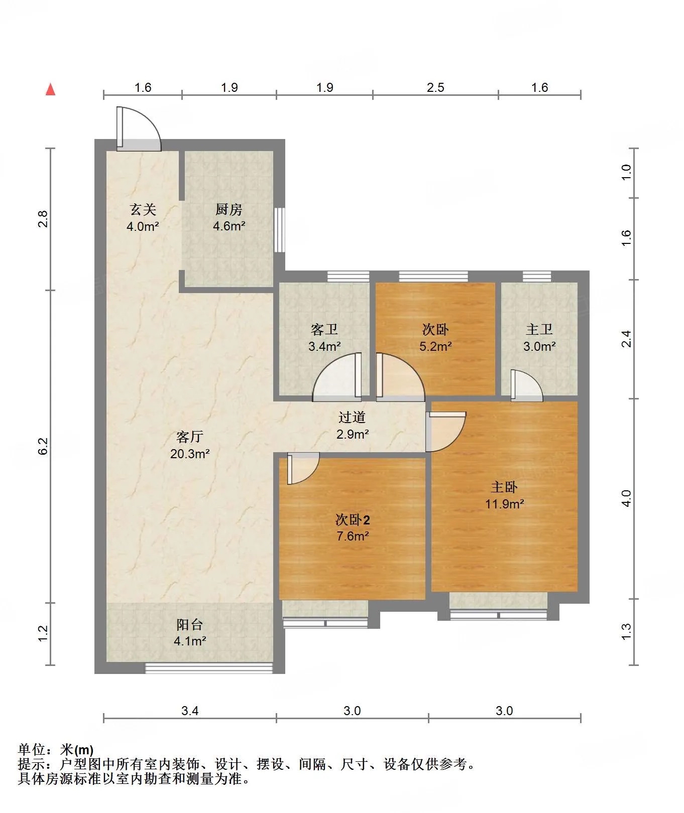 厅室3室2厅2卫1阳台