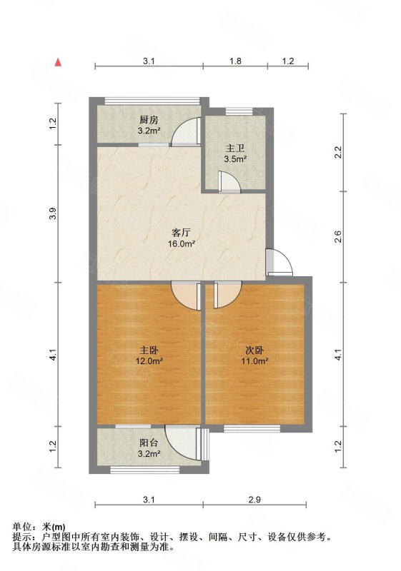 朝向南北 建筑面积66.8㎡